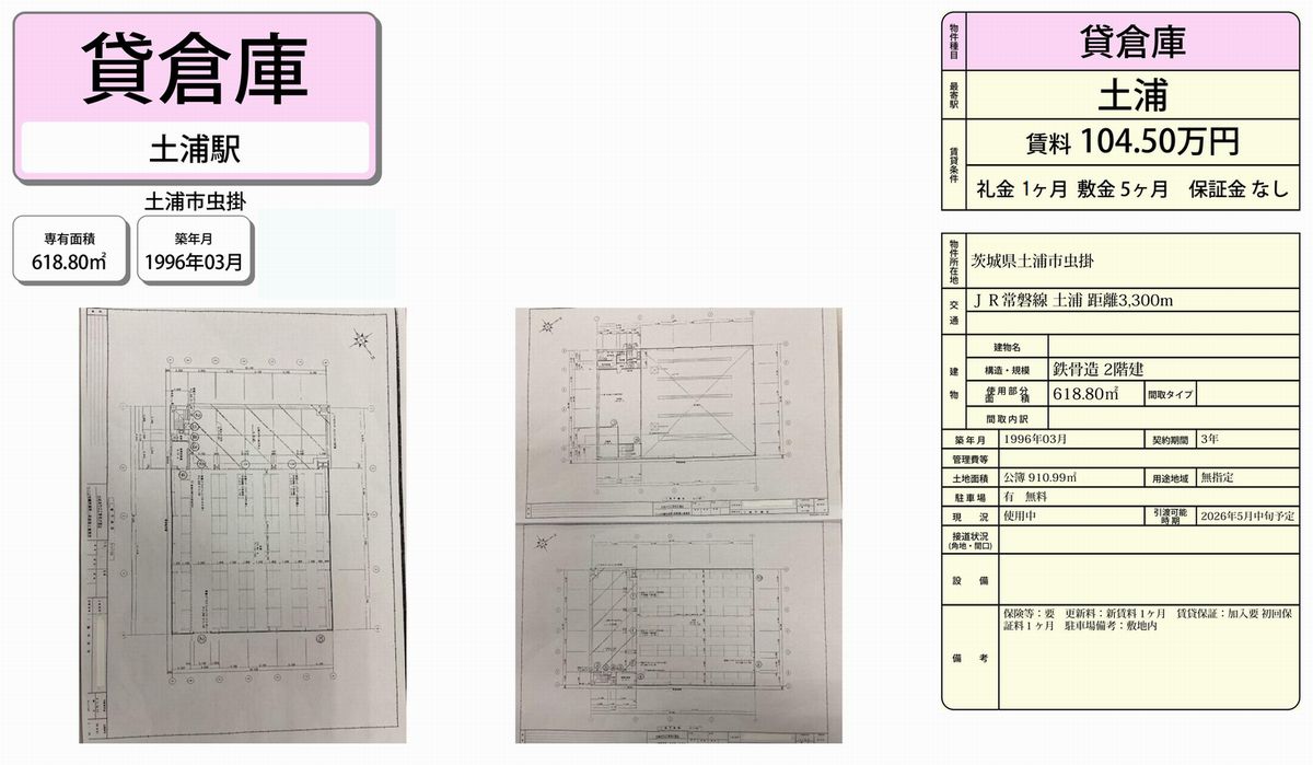 土浦市虫掛 (土浦) 土浦 貸倉庫 詳細データ
