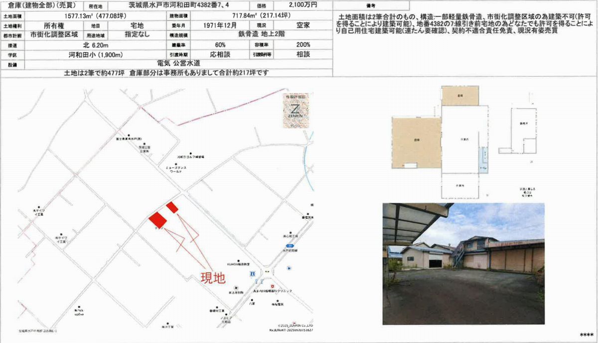 水戸市河和田町4382-7 (赤塚) 赤塚 売倉庫 詳細データ