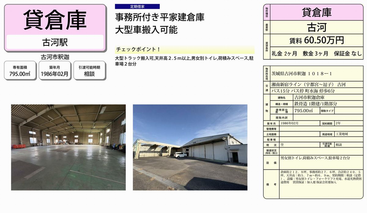 古河市釈迦1018-1 (古河) 古河 貸倉庫 詳細データ