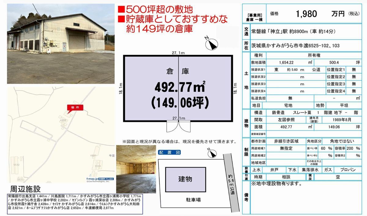 かすみがうら市牛渡6525-102 (神立) 牛渡倉庫 詳細データ