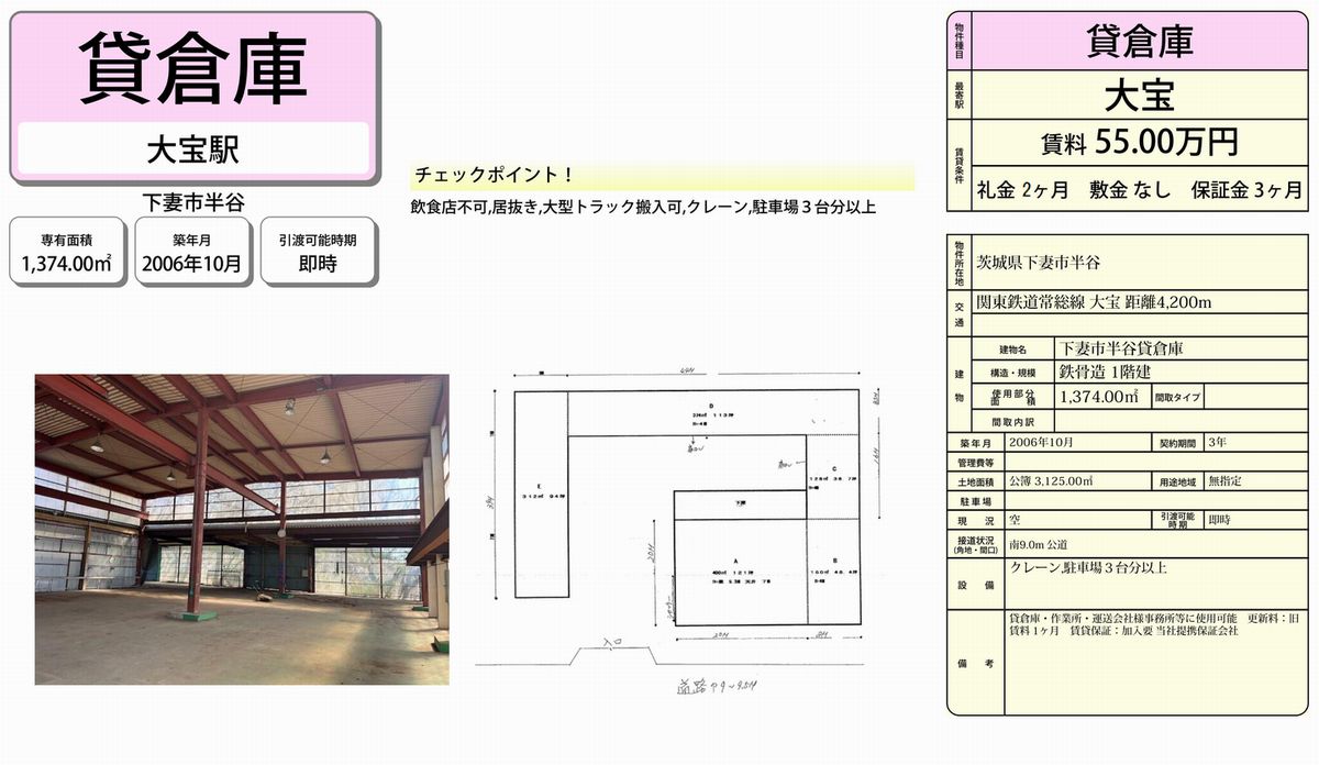 物件名 下妻市半谷貸倉庫